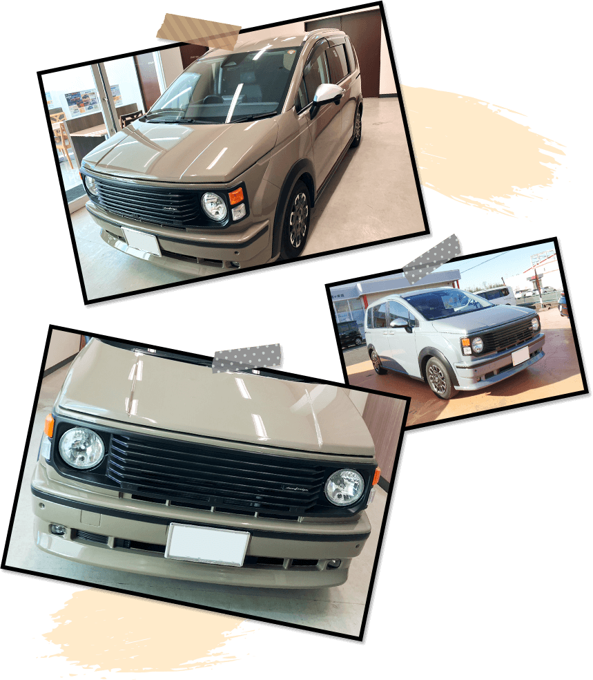 「エレガントな威厳」をテーマに、上品さの中にハイトワゴンとしての力強さをアドオン。丸目のヘッドライトを活かしつつ、中央部には四連のアクセサリーランプで遊び心をプラス。アウトドアライフにぴったりの一台へ!